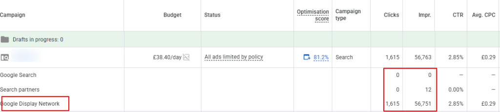 Every single impression and click had occurred on the Google Display Network!
